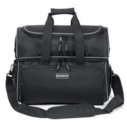 DSLEAF Bowling Bag for 2 Balls, Bowling Tote with Wooden Bowling Cups and Padded Divider for Double Ball and A Pair of Bowling Shoes Up to Mens 16 and