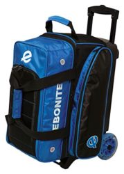 This bowling bag will hold UP TO  2 Bowling Balls along with shoes and accessories. Black/White/Red accents 5-Year Limited Warranty 600-denier Polyvinyl Fabric (2) 5″ Wheels for Increased Mobility