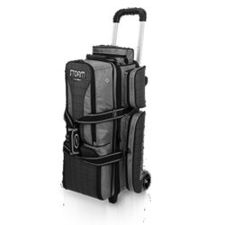 This Moxy Blade 3 ball roller bowling bag has a smooth, quiet ride. It features a large accessory pocket for your bowling accessories and has an extra large shoe