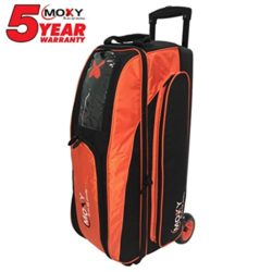 This Moxy Blade 3 ball roller bowling bag has a smooth, quiet ride. It features a large accessory pocket for your bowling accessories and has an extra large shoe