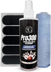 Bowling Ball Cleaner Spray with Cleaning Cloth and Thumb Tape – Oil, Scuff, and Belt Mark Cleaner Restores Tack and Prolongs Lifespan of Ball – EPA Safe Bowling Ball Restoration – 8 Fl Oz