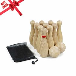 DRAROAD Wooden Lawn Bowling Game/Skittle Ball- Indoor and Outdoor for Families and Kids, Great for Birthday Parties, Picnics, BBQs (10 Pins & 2 Bowling) Great Gift for Kids