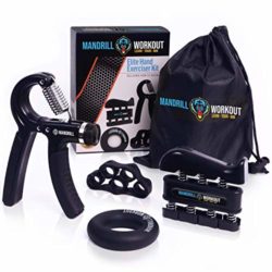Mandrill Hand Strengthener Forearm Grip Workout Kit 4-in-1 + Carry bag + eBook + 10 years warranty Mandrill Team created the 4-in-1 complete Grip Strength Trainer Kit to help strengthen and